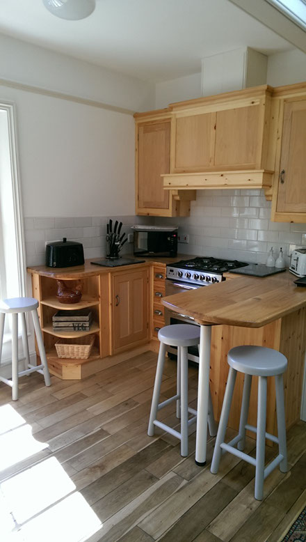 The upper floor apartment is luxurious and sleeps 4. It is spacious and tastefully furnished with a self contained entrance hall with stairs leading to the upper floor apartment. It has two large bedrooms one with a double bed and the other with two single beds. There is a fully equipped kitchen with breakfast bar. The lounge is spacious and has a dining area too. A shower room with rain shower completes the room list. The apartment has tiled and wooden floors, with carpets in the bedrooms and lounge. It is centrally heated with free wifi also included.