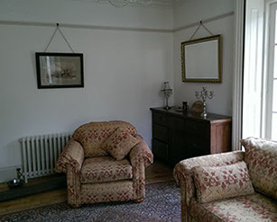 The ground floor apartment is luxurious and sleeps 3. The apartment is spacious and tastefully furnished with a large private entrance hall leading to a double aspect lounge area. A large master bedroom with king size bed and a smaller second bedroom with single bed. The kitchen is down some stairs in the basement with a seating area, walk in pantry, gas oven, microwave, fridge and freezer. There is a large bathroom with bath and rain shower over the bath. The apartment has both wooden floors and tiles, with warm rugs in the lounge and master bedroom. It is centrally heated with free wifi also included.